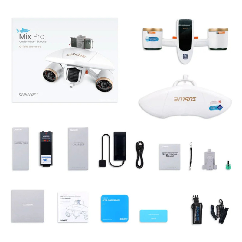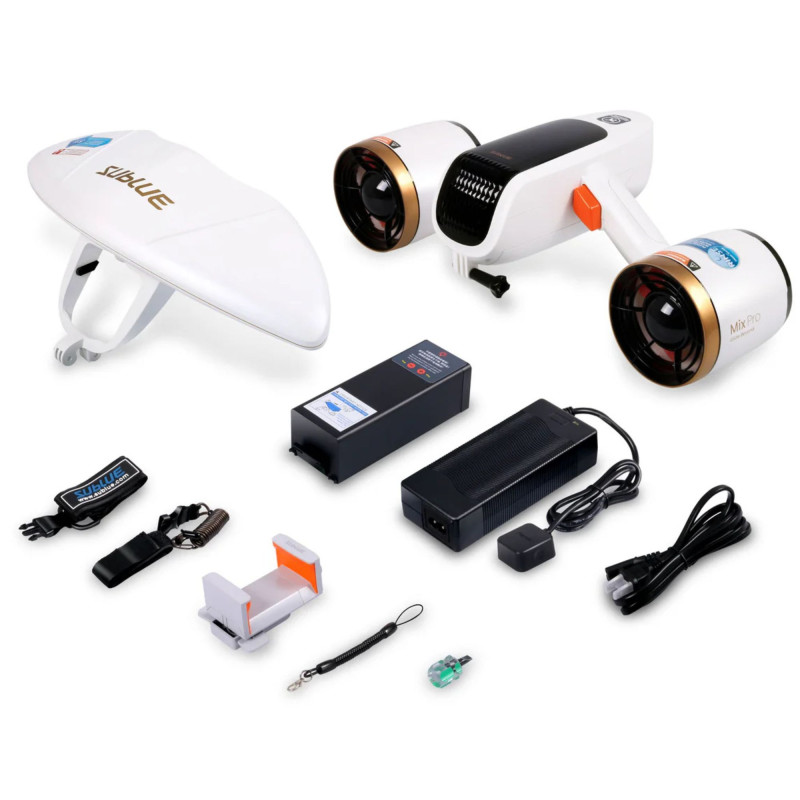 Το Sublue MixPro Underwater Scooter είναι το πρώτο φορητό υποβρύχιο scooter με διπλό κινητήρα, σχεδιασμένο για να προσφέρει υψηλή απόδοση, ευκολία μεταφοράς και απόλυτο έλεγχο κάτω από το νερό. Με δυνατότητα κατάδυσης έως 40 μέτρα και μέγιστη ταχύτητα έως 1.8 m/s (6.5 km/h), συνδυάζει ισχύ και ευελιξία για snorkeling και diving.