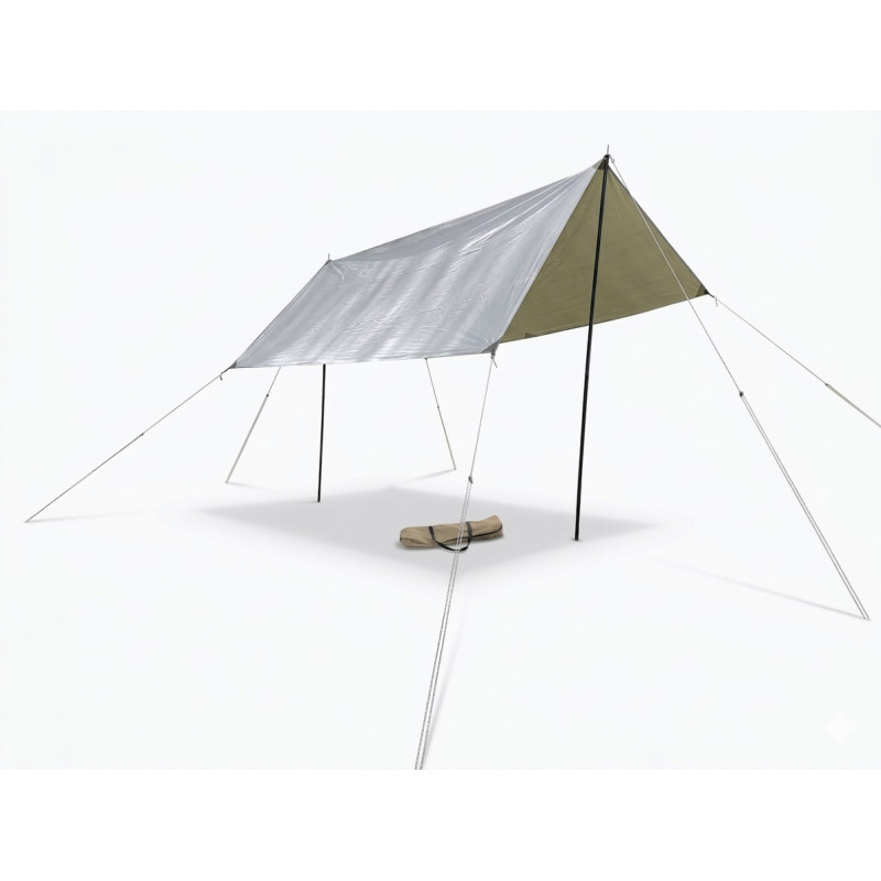 Η τέντα διαθέτει μεταλλικούς πασσάλους στήριξης ύψους 240cm για σταθερότητα, ενώ συνοδεύεται από σχοινιά και πασαλάκια εδάφους για ασφαλή στερέωση. Το ευρύ σκίαστρο 3x3 μέτρων μπορεί να καλύψει άνετα 2 έως 4 άτομα, δημιουργώντας έναν δροσερό και προστατευμένο χώρο.